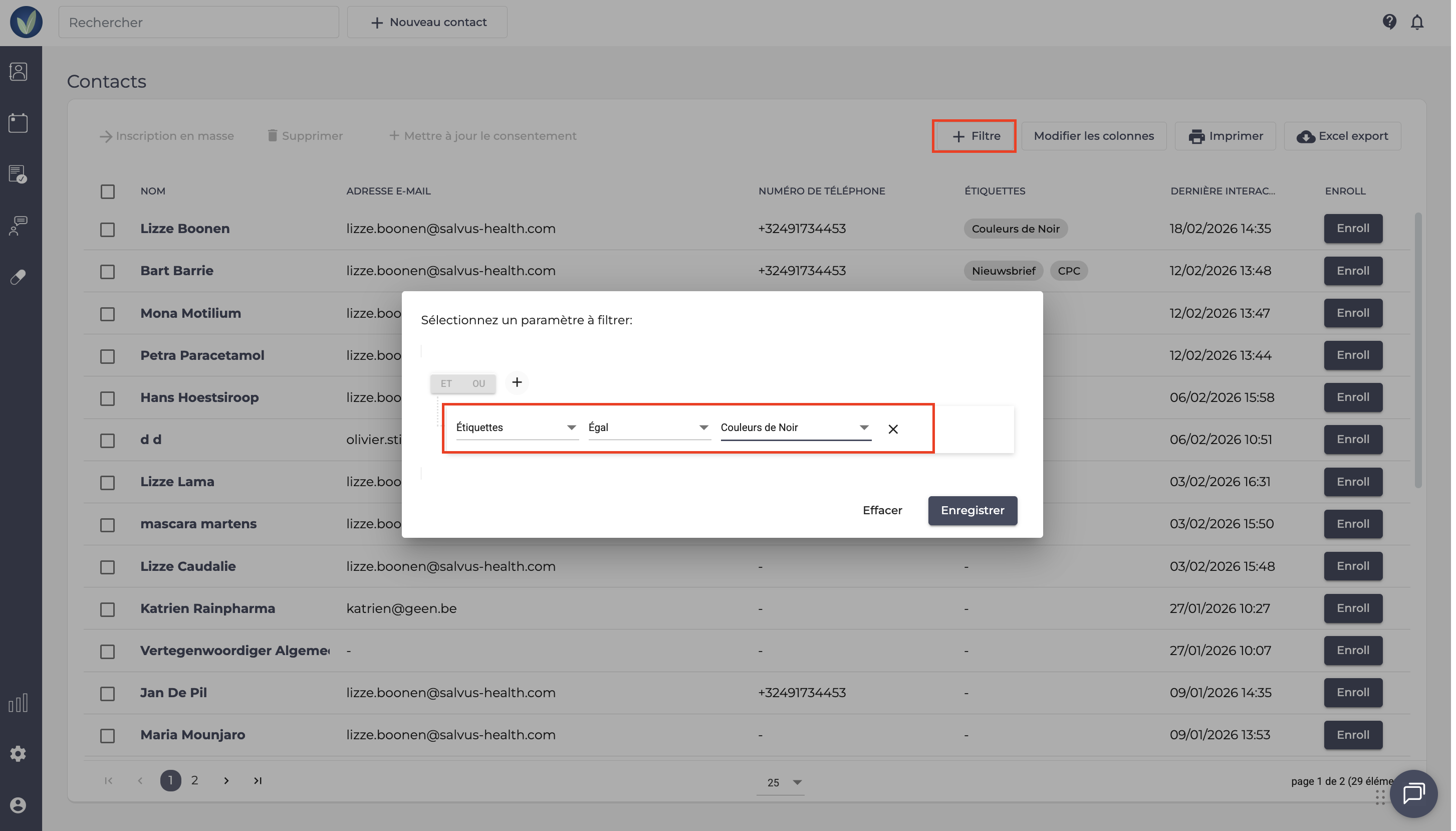 Dans Contacts, vous pourrez ensuite filtrer sur cette étiquette.