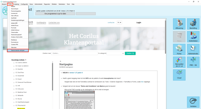 1. Klik in Corilus op 'Fiches' en vervolgens op 'Geassocieerde verkopen'.