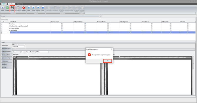 5. Klik vervolgens op 'Opslaan', anders kan u niet verder. Er verschijnt een pop-up 'ongeldige gegevens'. Deze mag u wegklikken door op OK te klikken.