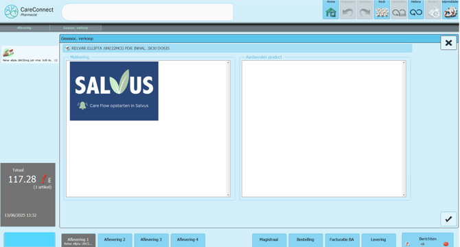 Een eenvoudig stappenplan om uzelf en uw team tijdens het afleveren van een product in Corilus een reminder te geven om een Care Flow op te starten in Salvus Health.